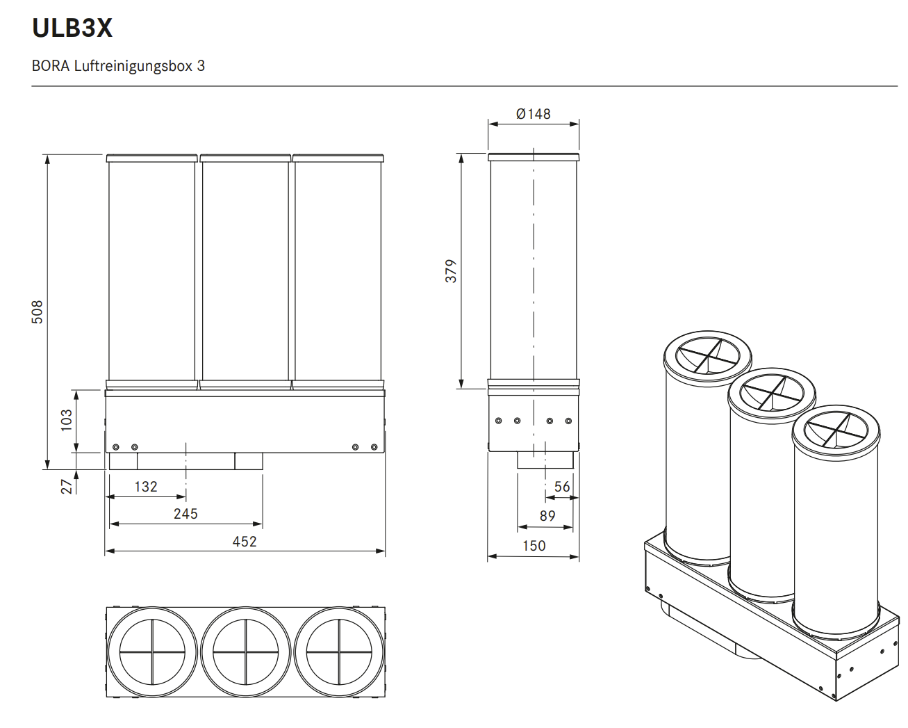 ? Geeignet für Professional 3.0, Professional 2.0, Classic 2.0 ? Standzeit ca. 600 h / 3 Jahre ? effektive Geruchsbeseitigung ? Vielseitige Einbaumöglichkeiten ? komplettes BORA System