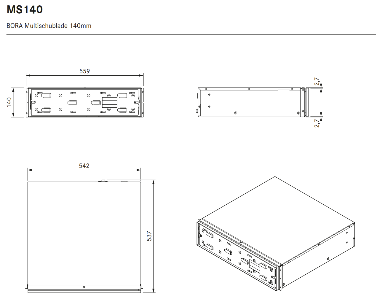 - 1x MSF140 BORA Multischublade Glasfront 140mm