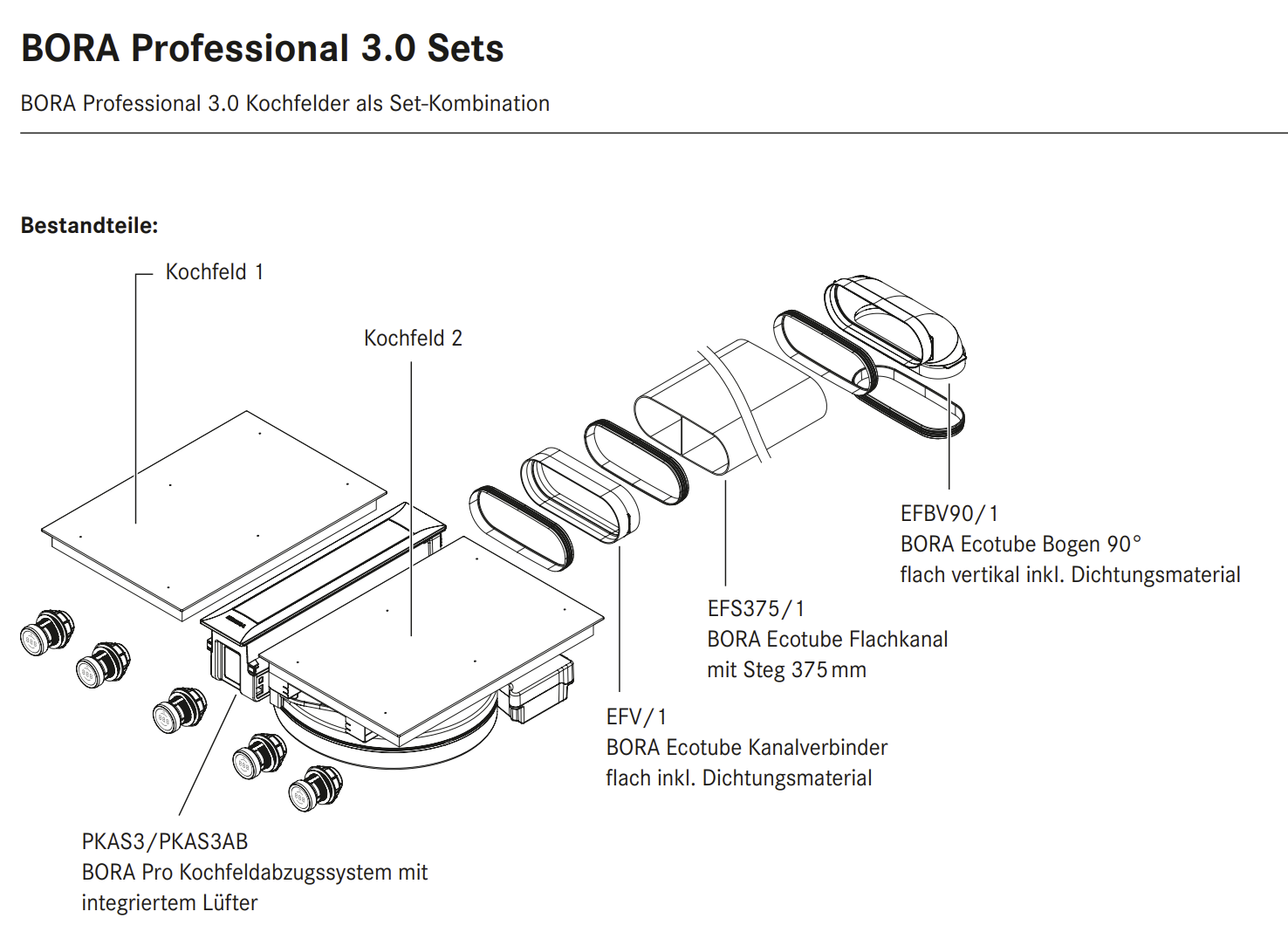 - 1x PKAS3AB BORA Pro Kochfeldabzugssystem mit integriertem Lüfter All Black