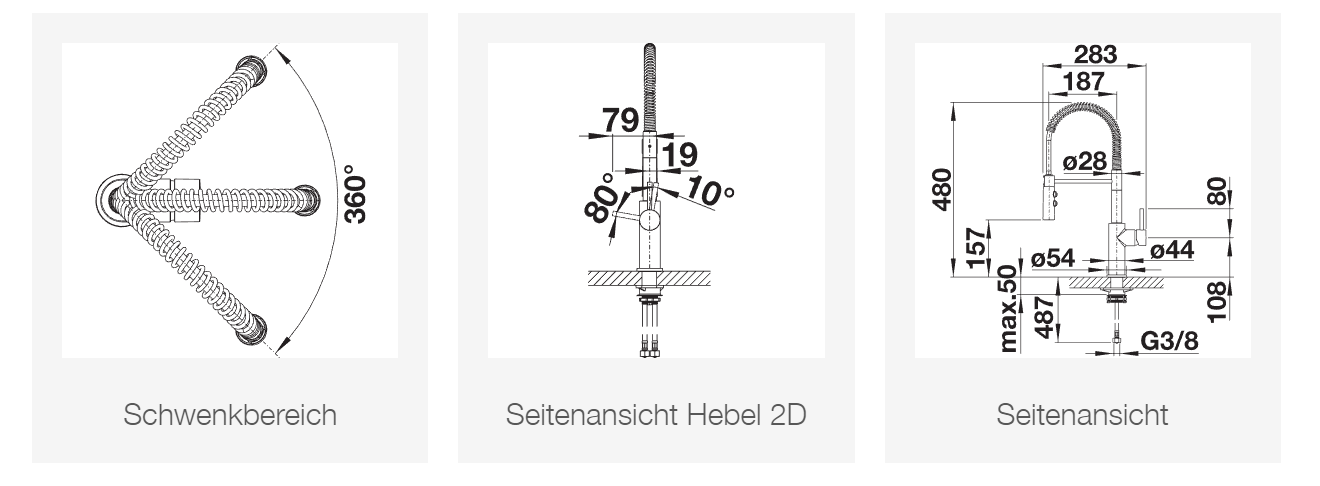 - Flexible Anschlussschläuche mit 450 mm Länge und 3/8" Mutter für besonders leichte und sichere Montage