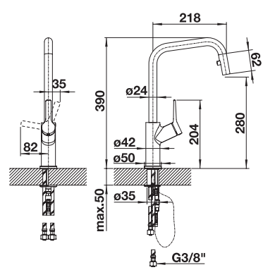- Hahnlochbohrung mit Ø 35mm erforderlich