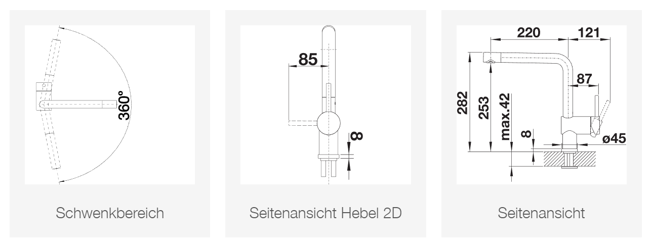 Erweiteter Aktionsradius durch 360° schwenkbaren Auslauf