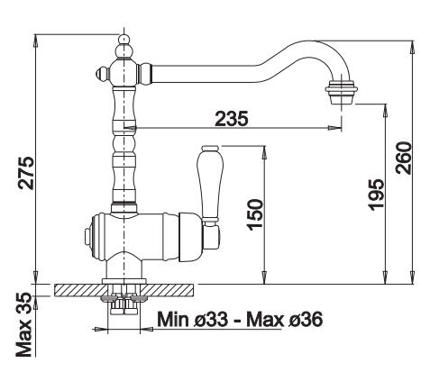 - Hahnlochbohrung mit Ø 35 mm erforderlich