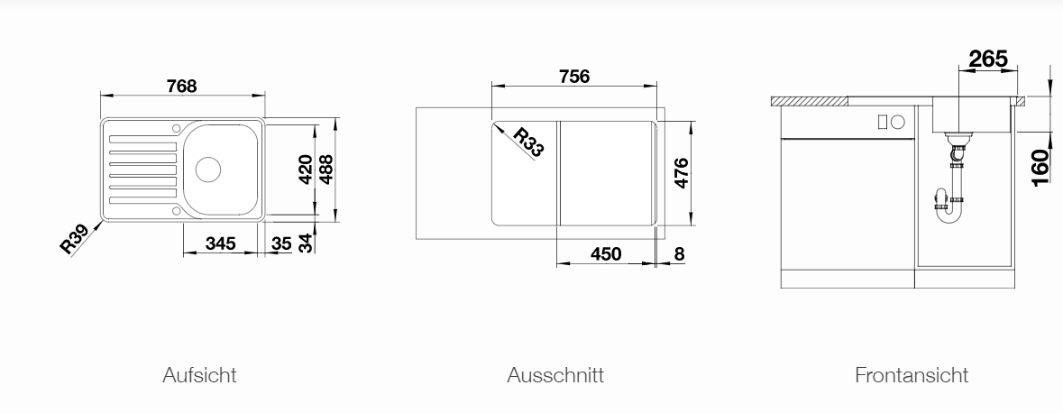 ab 45 cm Unterschrank einbaugeeignet - Becken reversibel