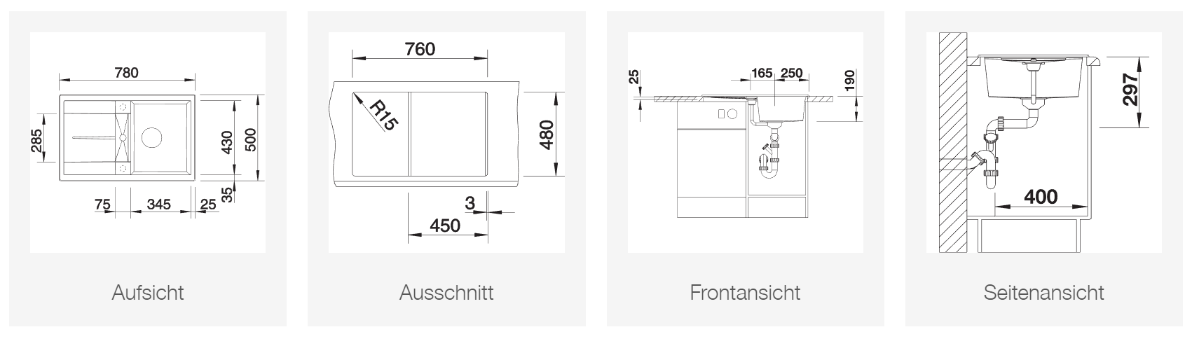 ab 45 cm Unterschrank einbaugeeignet