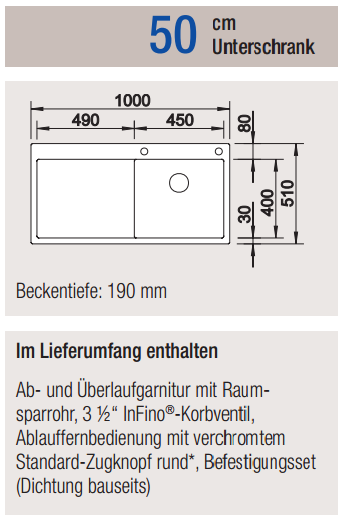 Lieferumfang: Ab- und Überlaufgarnitur mit Raumsparrohr, 3 ½ InFino®-Korbventil, Ablauffernbedienung mit verchromtem Standard-Zugknopf rund, Befestigungsset (Dichtung bauseits)