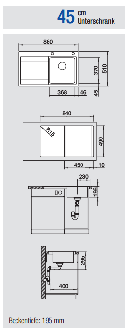 Beckentiefe: 195 mm