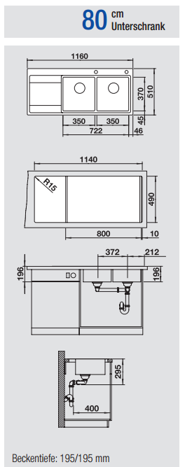 Beckentiefe: 195 mm / 195 mm
