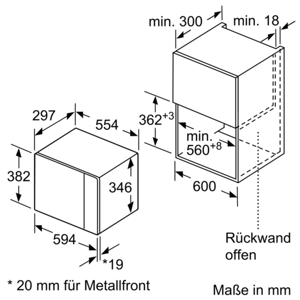 - Nischenmaße (HxBxT): 365 mm x 560 mm x 300 mm