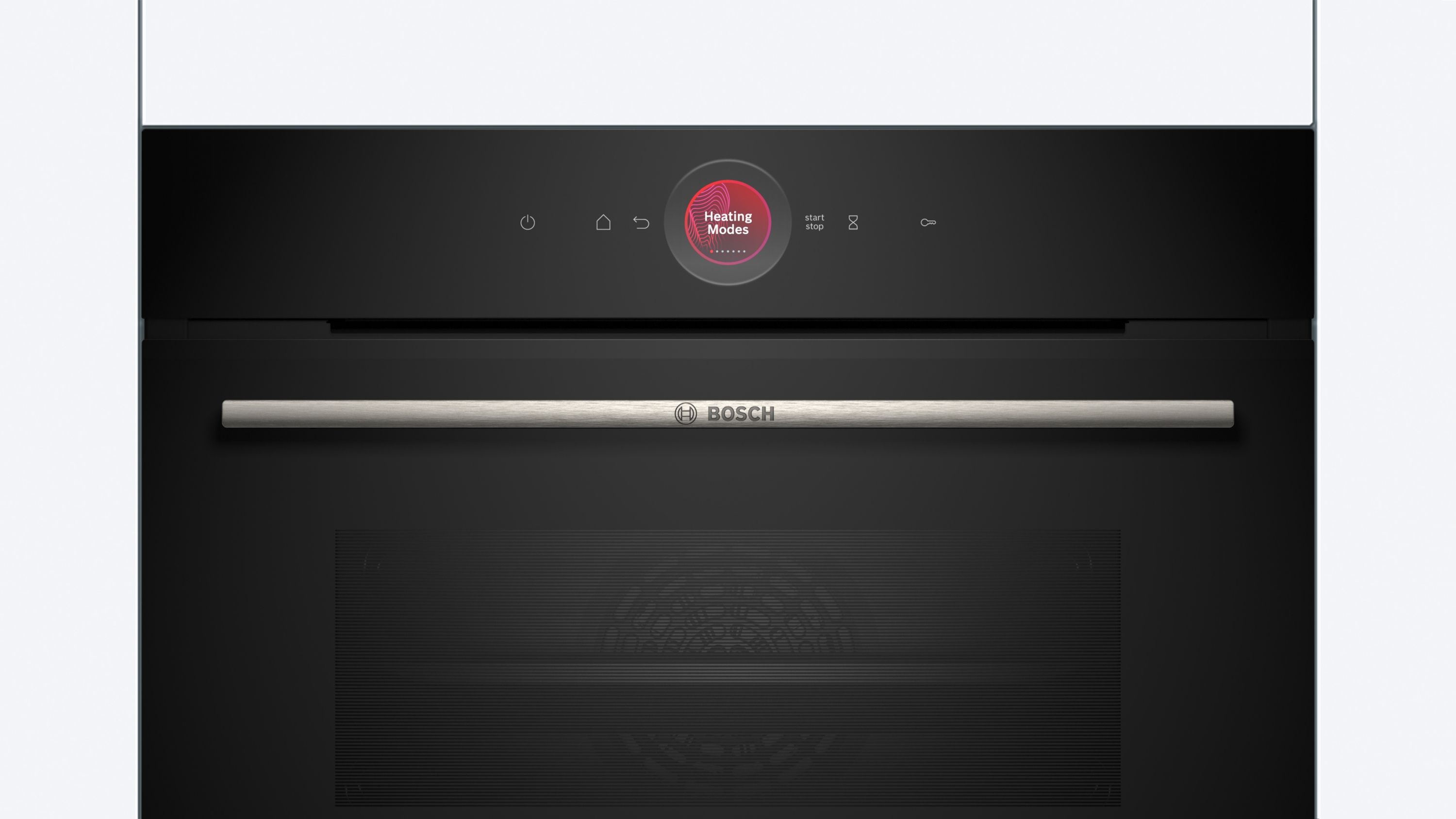 Der Einbau-Backofen mit digitalem Bedienring, TFT-Touchdisplay, Bosch Assist, Air Fry, PerfectBake Backsensor Plus und PerfectRoast Bratenthermometer Plus. Zusätzlich kann Home Connect bei der Bedienung über die App genutzt werden.