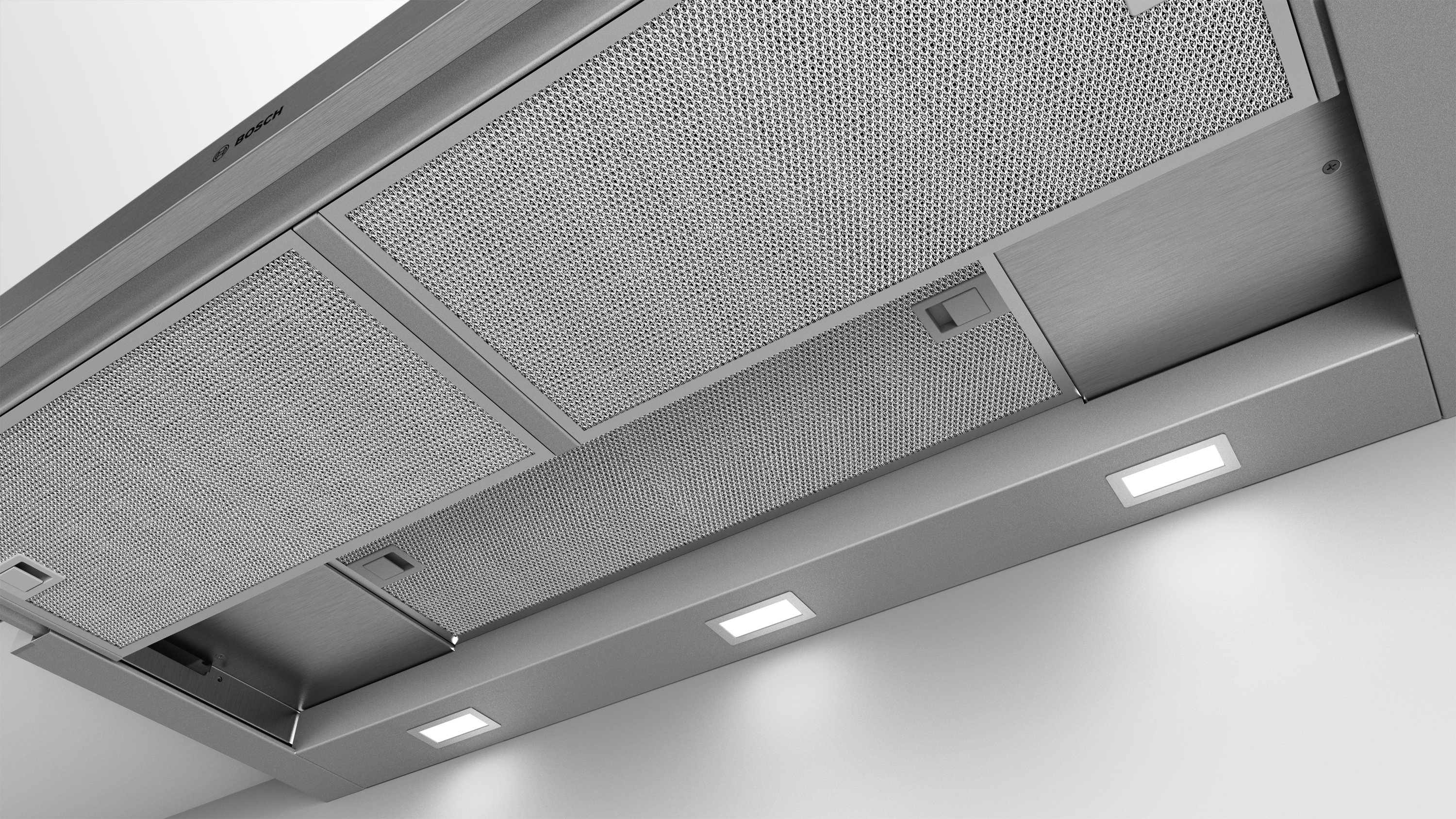 Flachschirmhauben: kaum sichtbar in einem Oberschrank integriert sorgen sie für ein klares Küchendesign