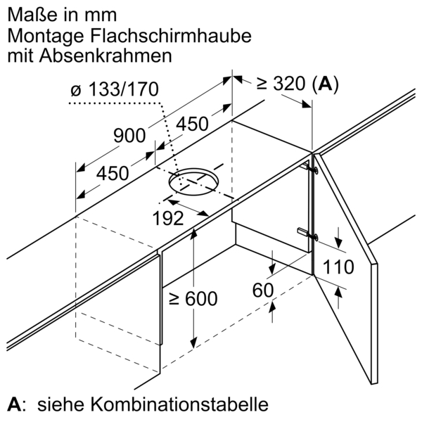 - Der Absenkrahmen läßt die Flachschirmhaube komplett im Oberschrank verschwinden