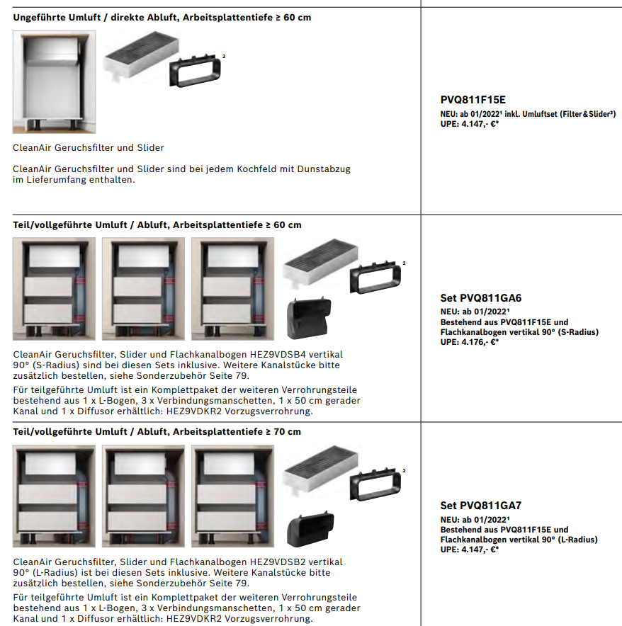 HEZ9VRPD0 für den voll- oder teilgeführten Umluftbetrieb mit cleanAir Geruchsfilter Starter Set HEZ9VRUD0 für den ungeführten Umluftbetrieb mit cleanAir Geruchsfilter