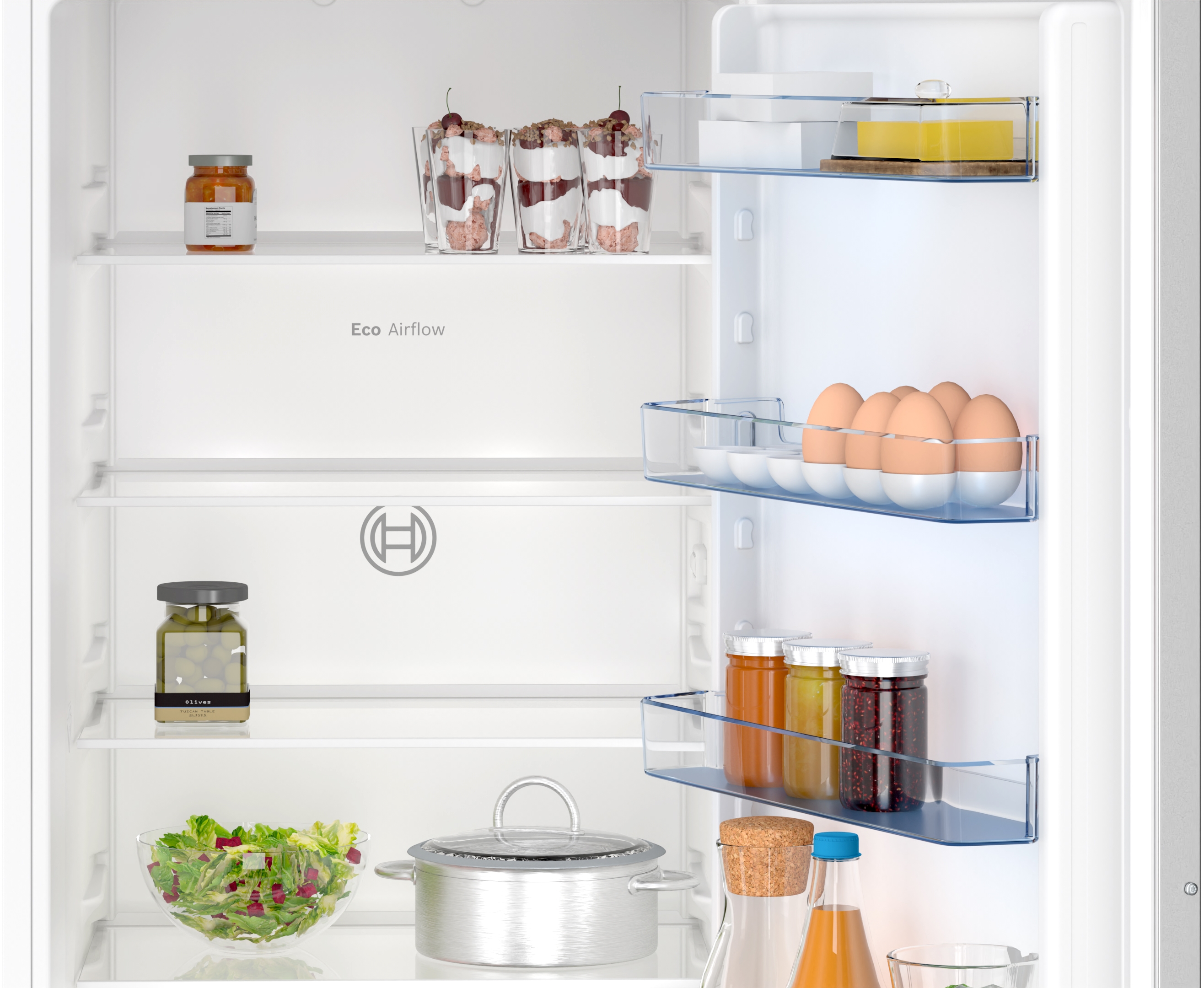 Die extra große Einbau-Kühl-Gefrierkombination mit 11% mehr Kühlvolumen inklusive Multi Box XXL-Schublade für Obst und Gemüse, und No Frost für die optimale Lagerung deiner Lebensmittel.