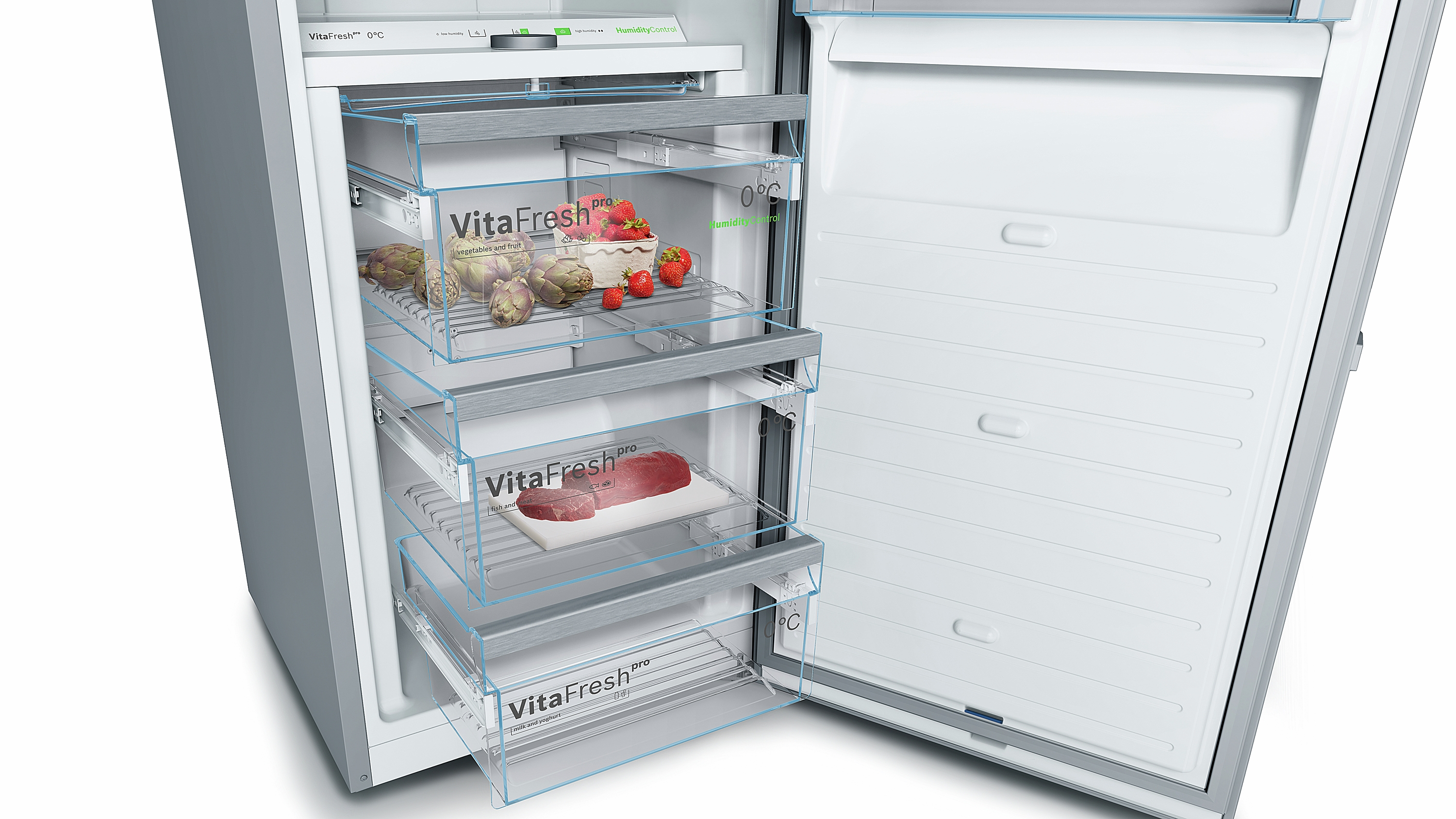 - 1 VitaFresh pro 0°C Schublade mit Feuchtigkeitsregulierung - hält Obst und Gemüse vitaminreich und bis zu 3x länger frisch