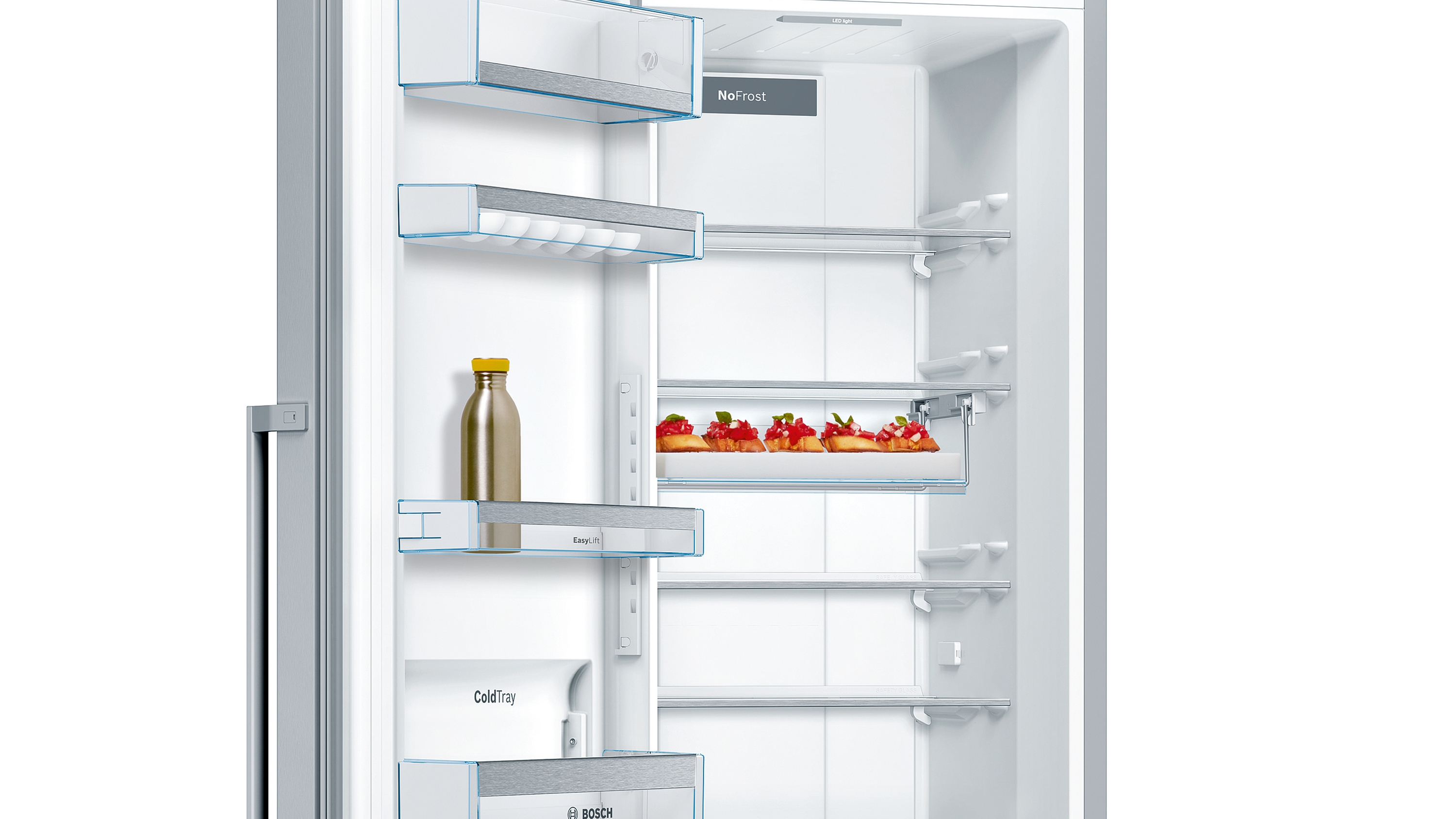 Easy Access Shelf: schneller an alles im Kühlschrank rankommen, dank ausziehbarer Glasablage.