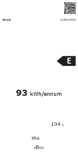 | Durchschnittlicher Energieverbrauch in Kilowattstunden pro Jahr (kWh/a) (EU 2017/1369): | 93 kWh/a |