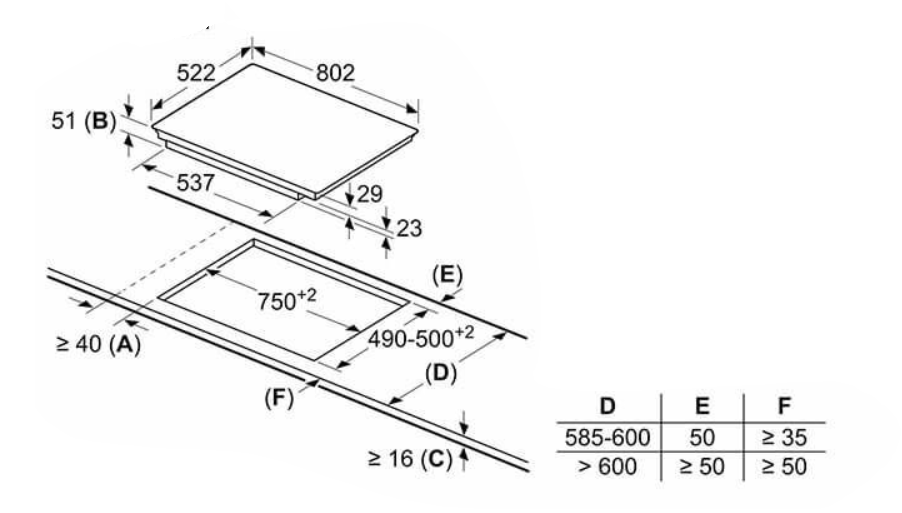 | Nischenhöhe minimal: | 490 mm |