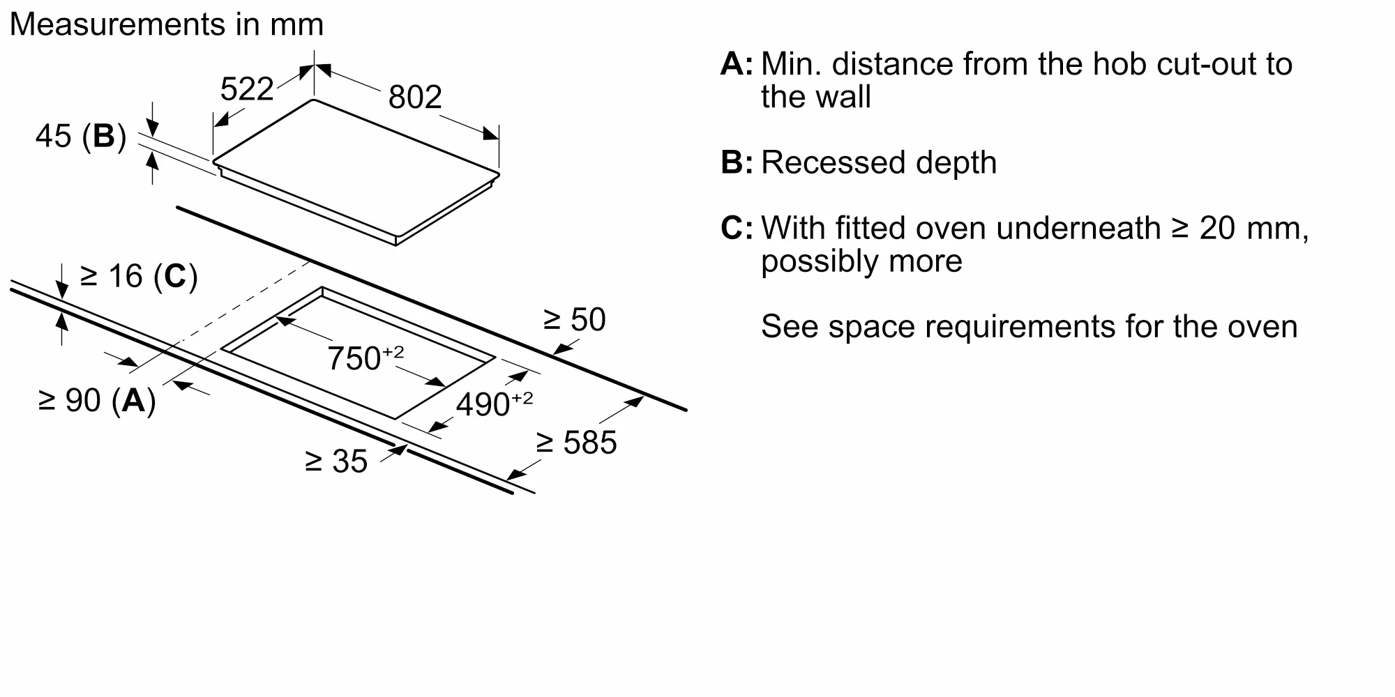 | Nischenhöhe minimal: | 490 mm |
