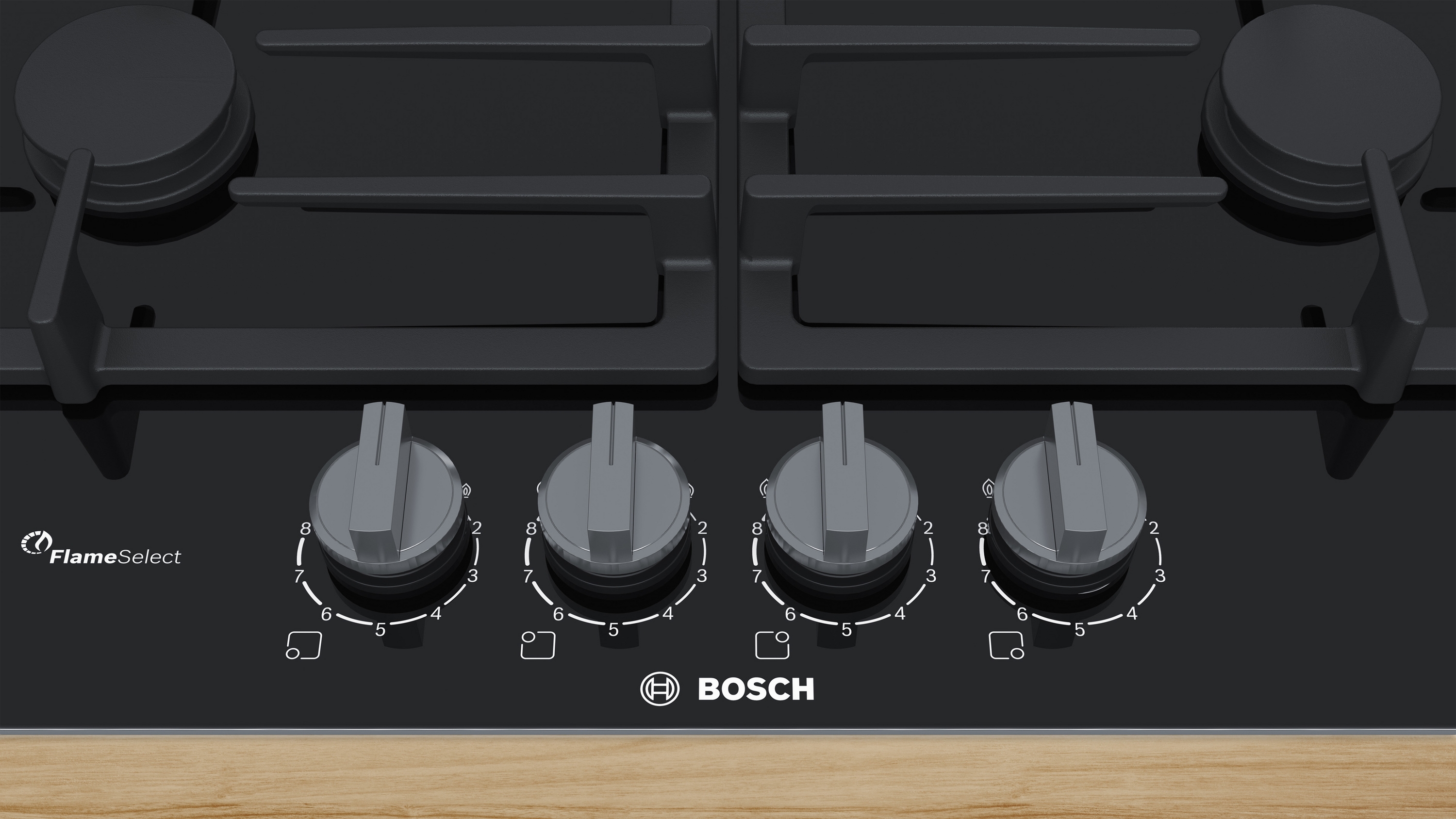 Die Gas-Kochstelle aus Glaskeramik mit FlameSelect: einfach zum perfekten Ergebnis dank neun präzise definierten Leistungsstufen.