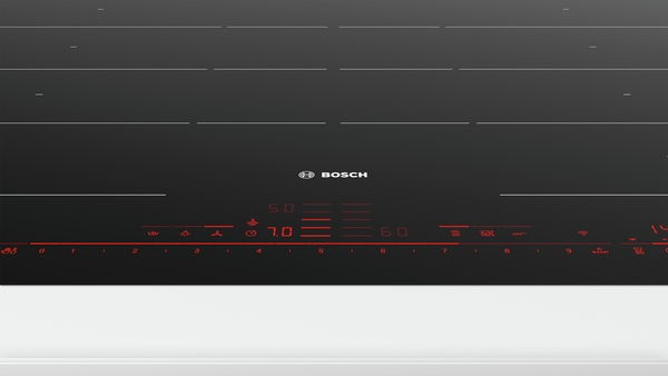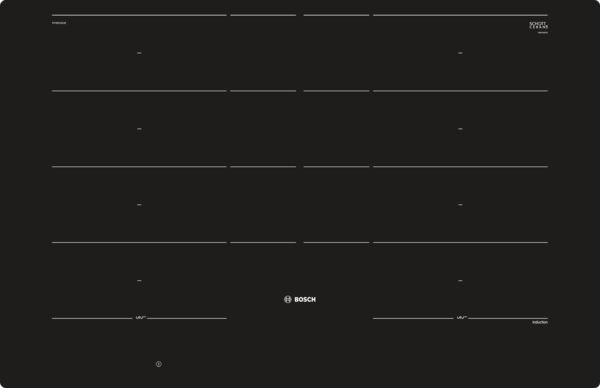 Erweiterte FlexInductions-Zone: noch mehr Flexibilität durch Zusammenschalten der Kochzonen zu einer durchgehenden Fläche, die bei größeren Töpfen noch erweitert werden können.