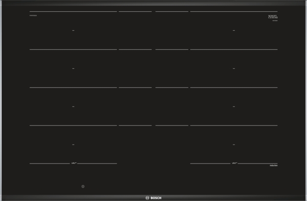 Erweiterte FlexInductions-Zone: noch mehr Flexibilität durch Zusammenschalten der Kochzonen zu einer durchgehenden Fläche, die bei größeren Töpfen noch erweitert werden können.