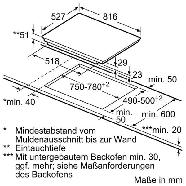 - Min. Arbeitsplattenstärke: 30 mm