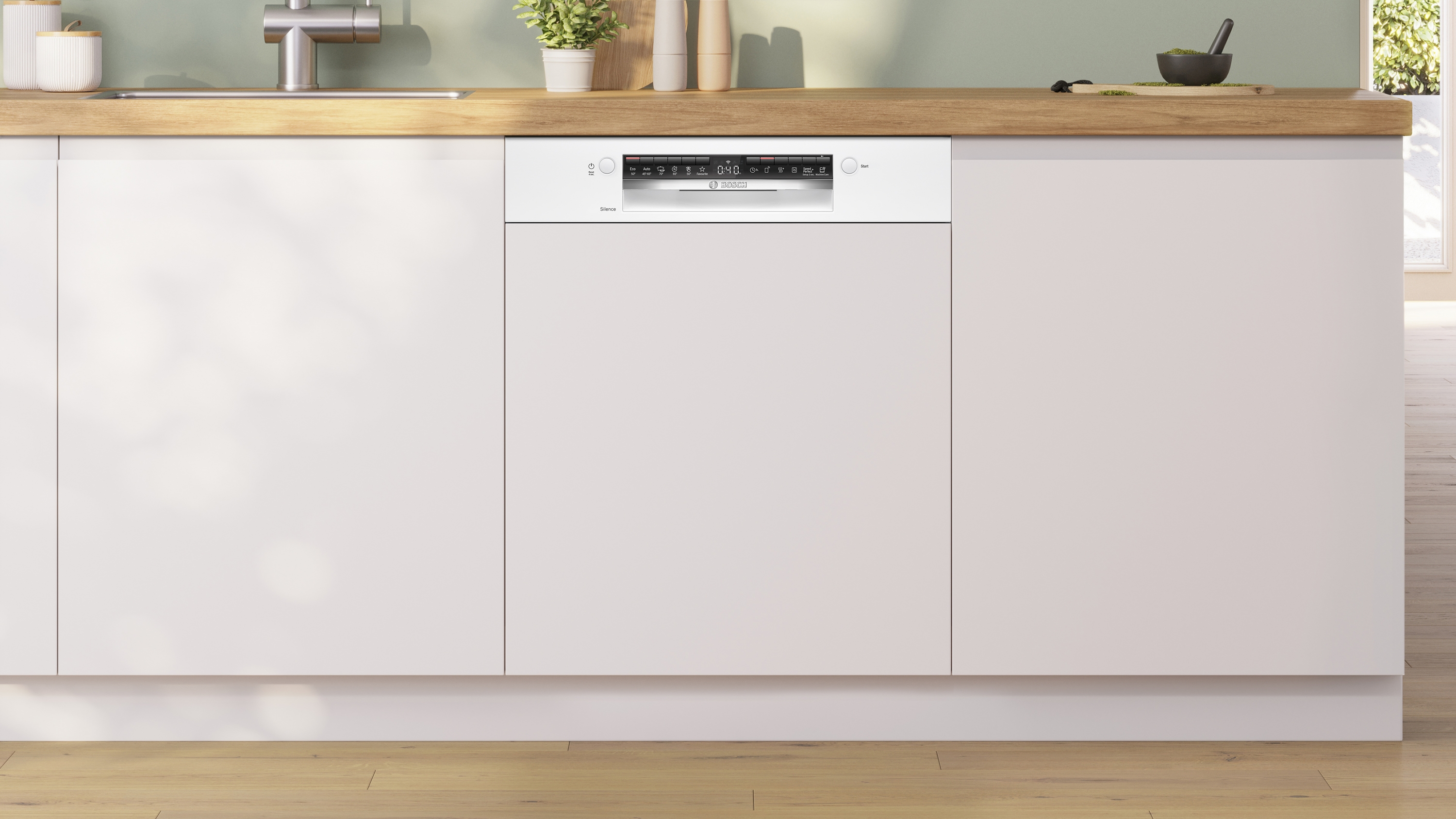 Silence Programm: Bei diesem Programm wird das Betriebsgeräusch deines Geschirrspülers automatisch auf den niedrigsten Geräuschwert reduziert.