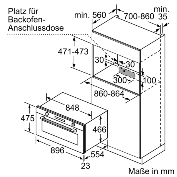 - Nischenmaße (HxBxT): 480 mm x 860 mm x 560 mm