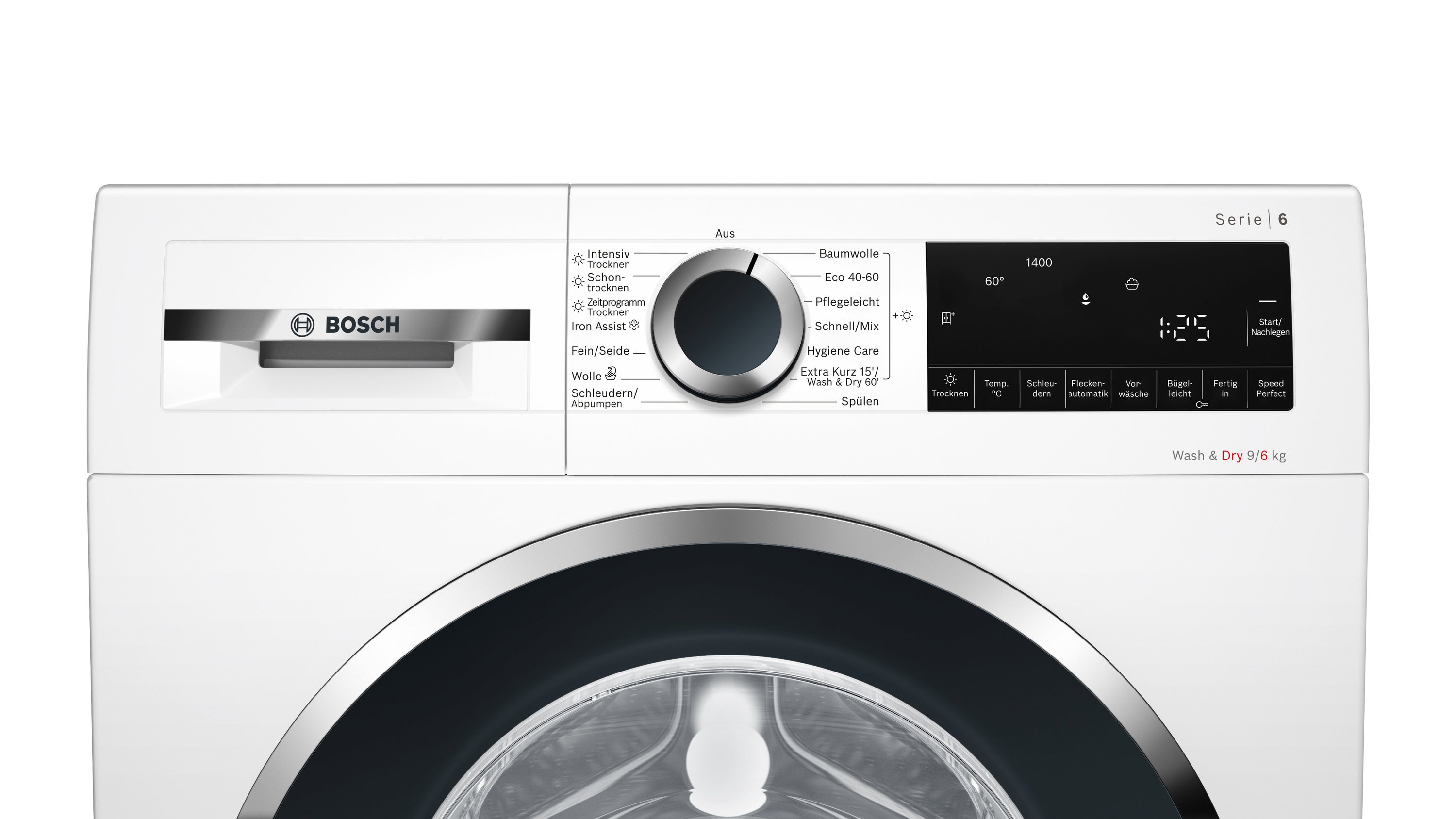 Wash & Dry: Bis zu 6 kg komfortabel in einem Durchgang Waschen und Trocknen.