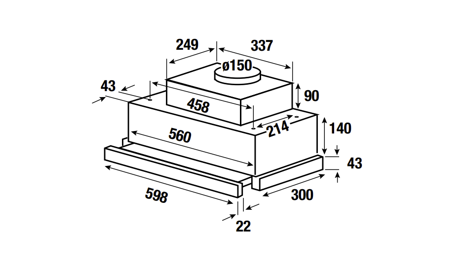 - Ausziehbares Flachpaneel zur Vergrößerung der Wrasenaufnahmefl äche