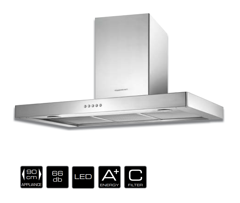 Wandhaube, 90cm, Edelstahl, Elektr. Drucktastenbedienung, EEK A+, 750m3/h, LED