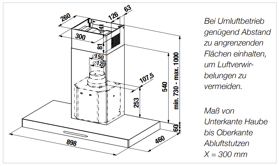 - Gerätemaße B x H x T ca. 900 x 730-1.000 x 460 mm