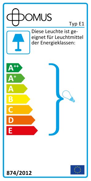- diese Leuchte ist geeignet für Leuchtmittel der Energieklassen: A++ bis E