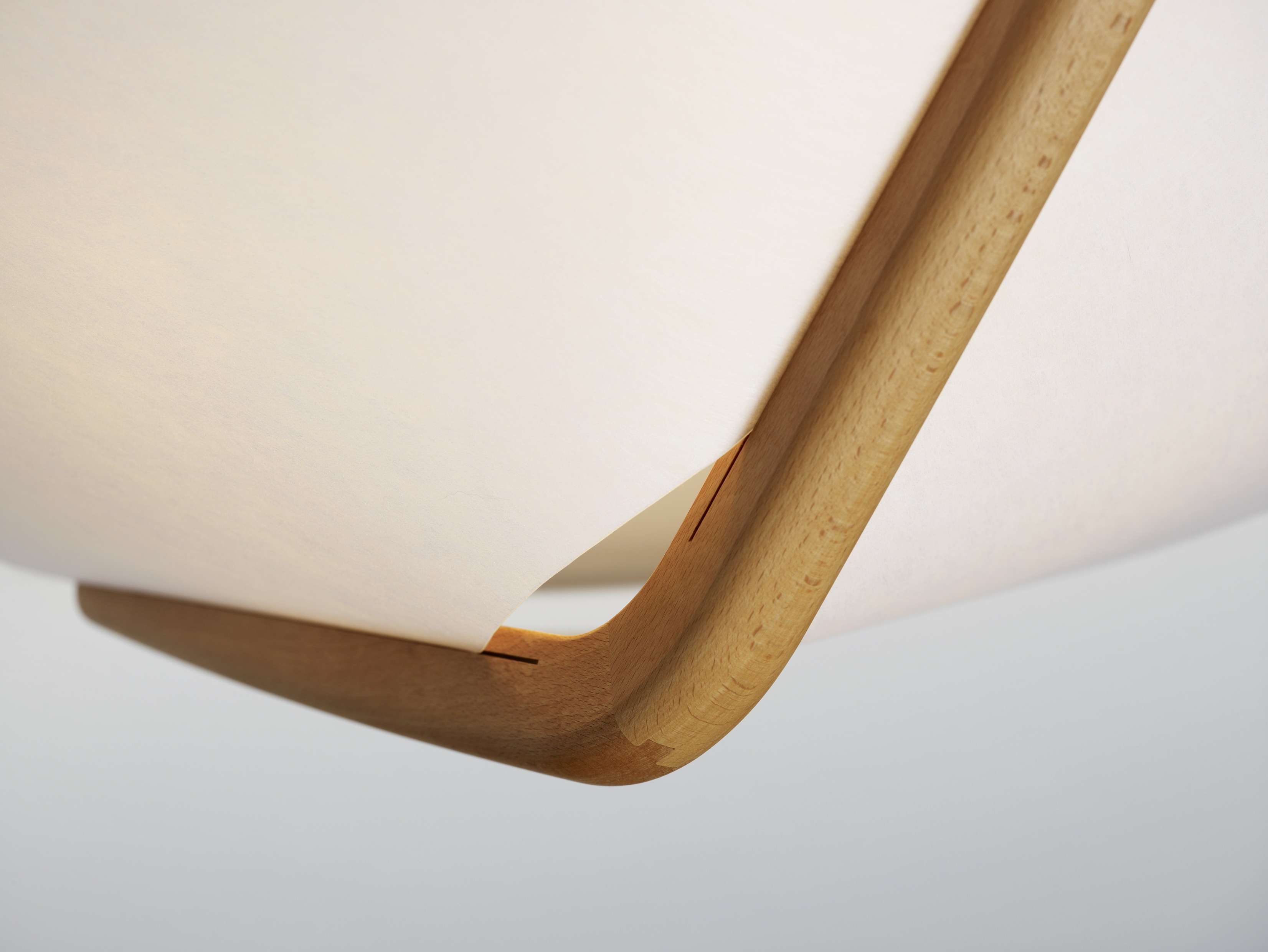 Blickfang dieser Leuchte ist der elegant geschwungene Bogen, der in vielen Arbeitsschritten aus einem einzigen massiven Holzstück gefertigt wird. Die Leuchte wird in zwei Größen angeboten.
