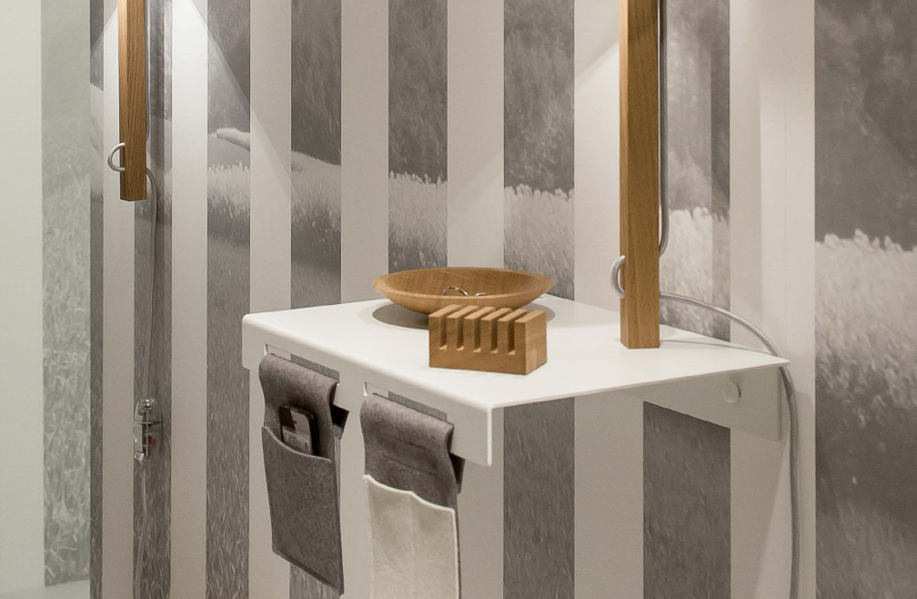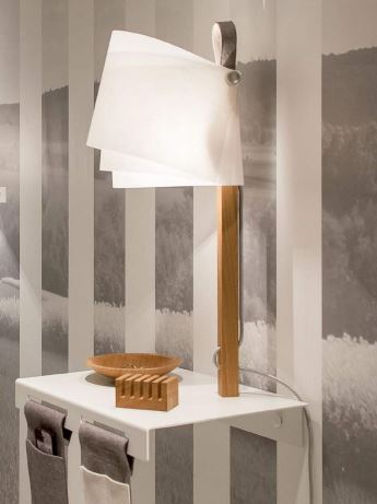 Erweitert wird das FLÄKS-Programm durch eine fest montierte Regalleuchte. Damit wird FLÄKS endgültig zum unverzichtbaren Einrichtungsgegenstand. In zwei schlitzförmige Aussparungen des kleinen pulverlackierten Tischchens lassen sich mittels eines simplen Klettverschlusses handliche Filztaschen hängen. Wie gemacht für Stifte, Brille, Mobiltelefon und anderen Kleinigkeiten. Für die Tischplatte gibt es zusätzliche Accessoires wie Briefhalter und eine gedrechselte Schale aus Eiche. Auch hier ist der Pfiff, wie bei der Leuchte selbst, der integrierte Magnet, der die Zubehörteile an Ort und Stelle hält. Sowohl im Wohnbereich, wie auch im Schlafzimmer, ist die Regalleuchte FLÄKS eine absolute Bereicherung.