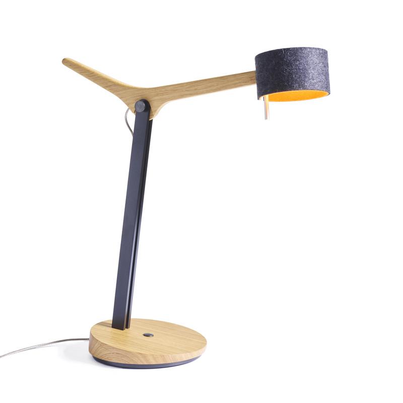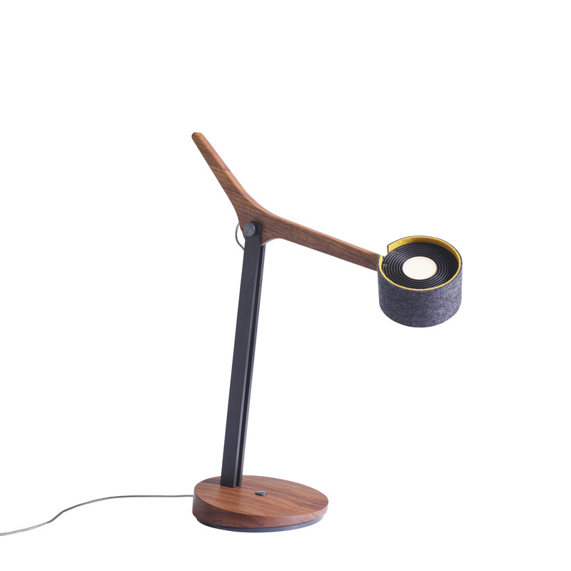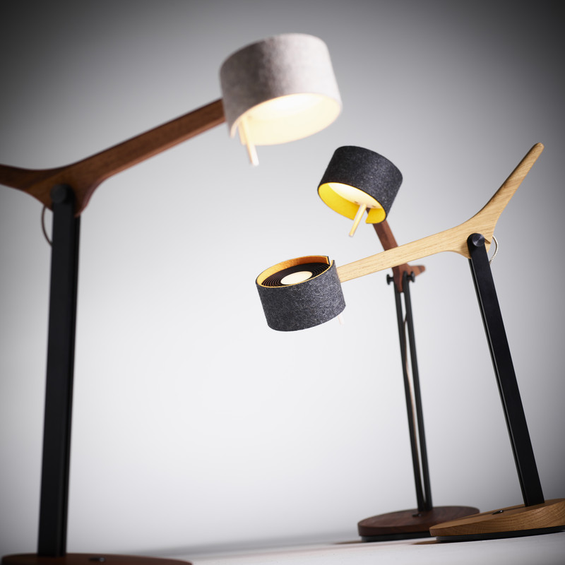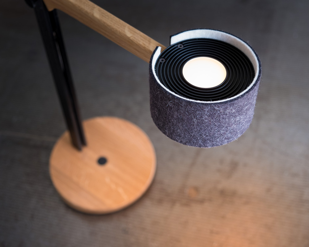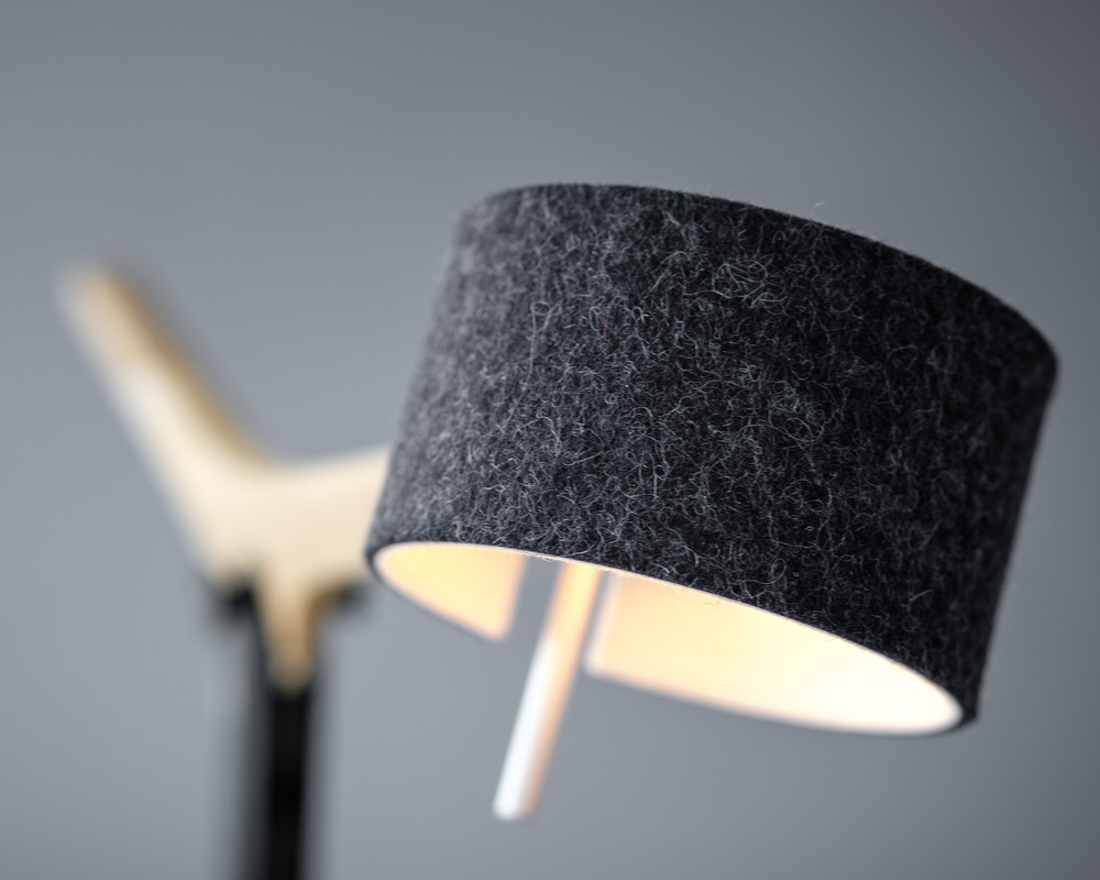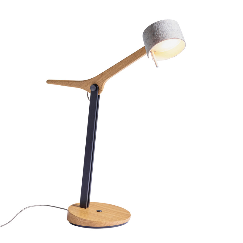 Fast scheint es, als nicke FRITS, unsere neue Tischleuchte, einem die ganze Zeit fröhlich zu, so dynamisch wirkt sie trotz der reduzierten Formensprache. Das unverwechselbare Design ist verbunden mit präziser Handwerkskunst und ausgereifter Lichttechnik, und macht FRITS zu einem absoluten musthave auf Schreibtisch oder Sideboard. Der aufwendig gestaltete Holzarm in Eiche oder Nussbaum lässt sich um 45 ° schwenken, der zweifarbige Wollfilzschirm beidseitig um 30°. So lässt sich das Licht mühelos dahin lenken, wo es gebraucht wird. Das nach oben abgestrahlte weiche LED-Licht sorgt für ein behagliches Ambiente. Dimmbar ist FRITS verblüffend einfach durch Gestensteuerung.
