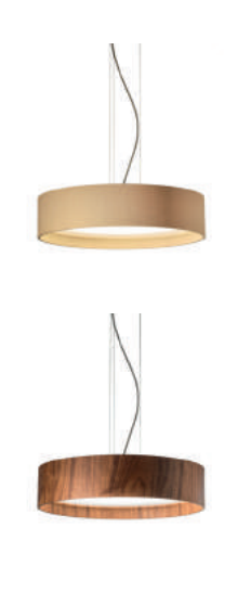 Besonders schön ist der Einblick in das Innere der Leuchte, wo durch den tief angesetzten Diffusor die Holzmaserung bzw. der Wollfilz vortrefflich zur Geltung kommen. Die Zuleitung besteht aus einem silbergrauen Textilkabel.