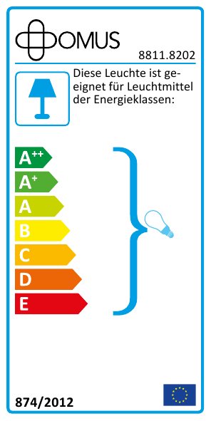 - Diese Leuchte ist geeignet für Leuchtmittel der Energieklassen: A++ bis E.