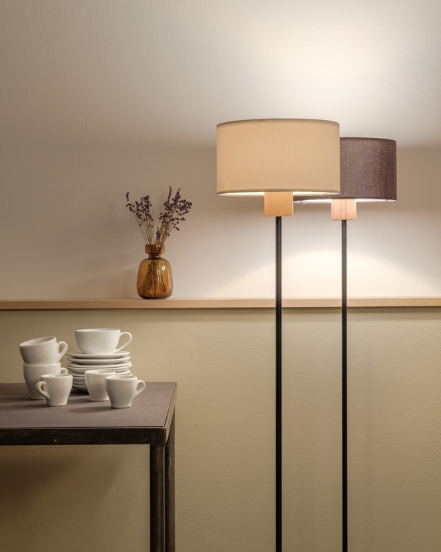 SMILLA, eine zeitlose Stehleuchte, die bewusst auf schlichtes Design und bewährte Technik setzt. Das Charakteristische an SMILLA ist der wohlproportionierte, aus Massivholz gedrechselte Leuchtenfuß. Er besteht aus einem schweren schwarzen Sockel und einem geölten Kugelabschnitt in Eiche oder Nussbaum. Ein echtes Stück Natur. Die Holzart findet sich optisch im Fassungshalter wieder, der gewollt einige cm unter dem Textilschirm hervorschaut. Das ausgesprochen schöne, graphische Durchlicht des Lampenschirms Trooper wirkt erfrischend lässig und rundet SMILLA gekonnt ab.