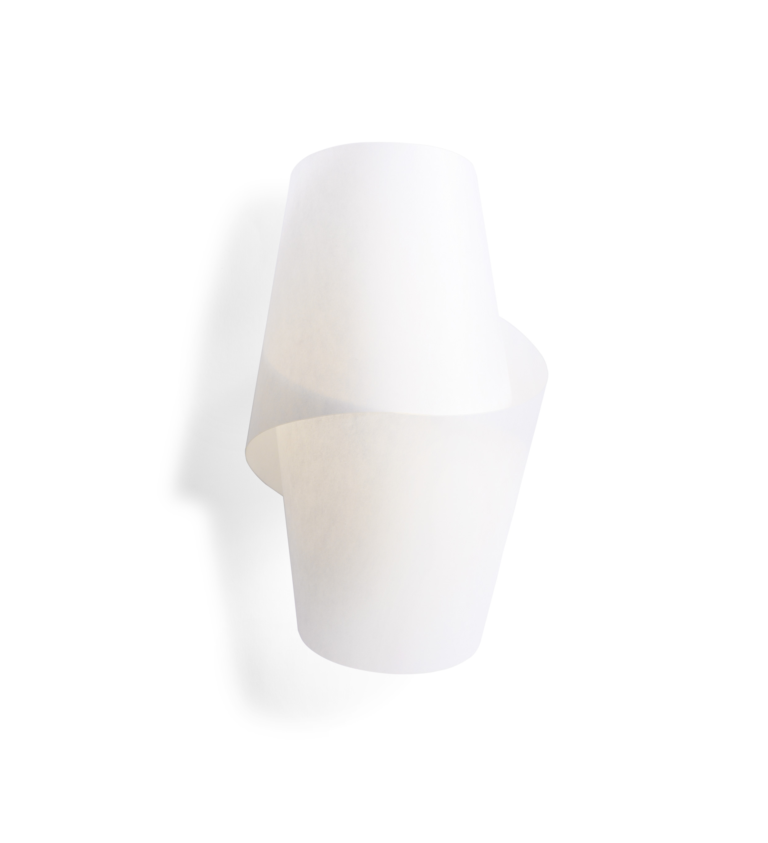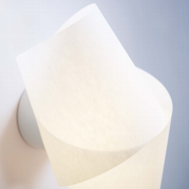 Ein einziger Streifen aus Lunopal, zweimal ineinander geschlungen, erschafft ein luftig-leichtes Gebilde. Unten und oben offen, wirft die Leuchte ein reizvolles Licht- und Schattenspiel auf die Wand.