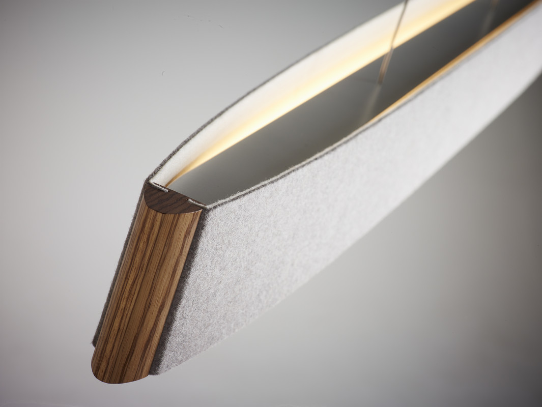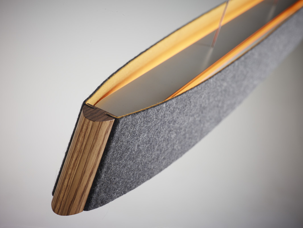 Die schlanke Silhouette von ZEP, deren zweifarbige Blende aus Wollfilz von den beiden Eiche,- bzw. Zebrano-Formteilen eingefasst wird, verbindet eindrucksvoll pures Design und innovative Technik. Das organische Material Filz wurde bewusst zur Lichtlenkung eingesetzt, um dem an sich technisch harten Licht von LEDs eine weiche und stimmungsvolle Atmosphäre zu geben.