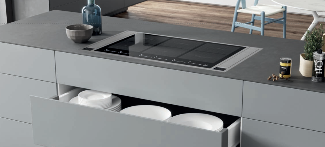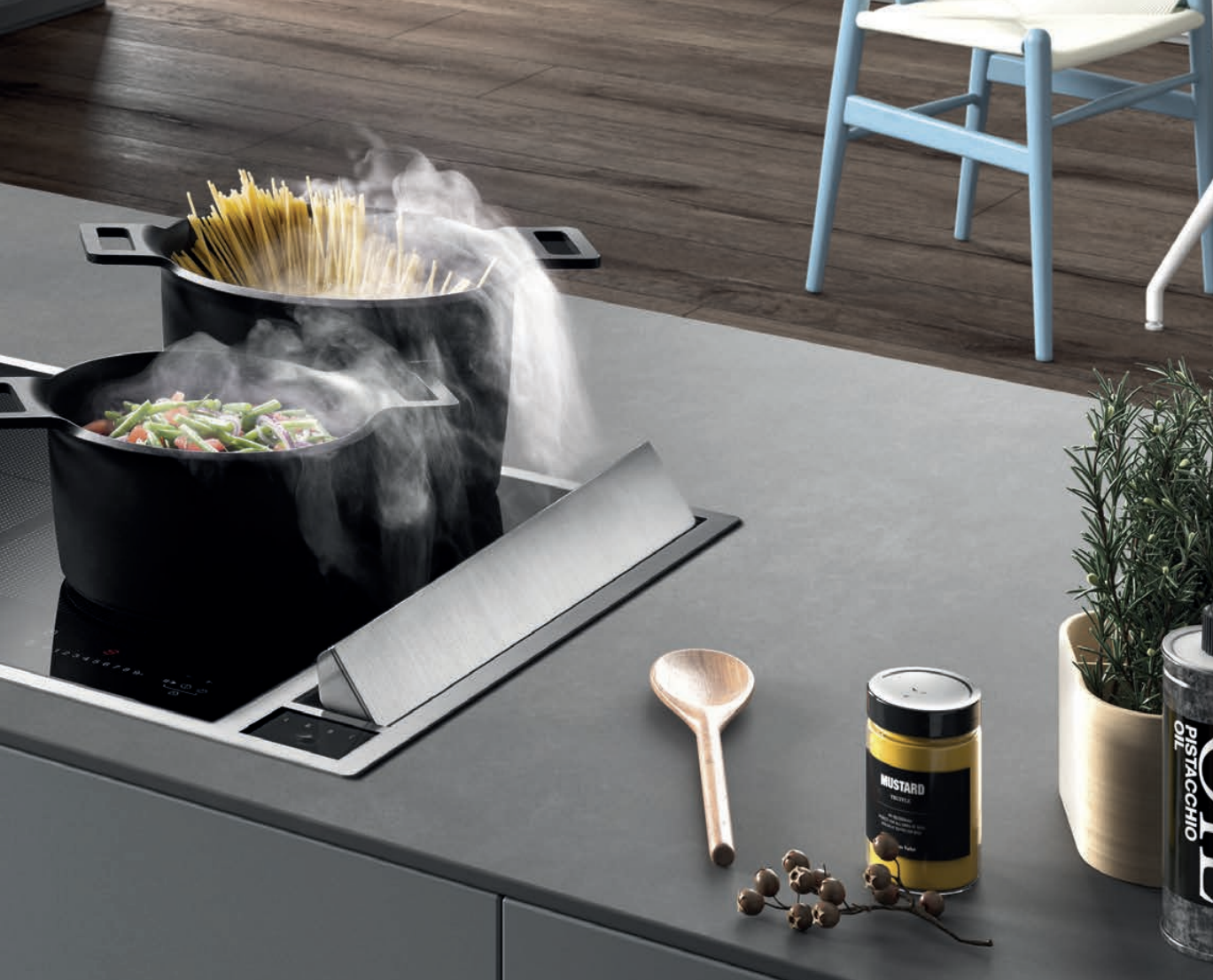Mit der Kochfeldabsaugung haben Sie nicht nur vollkommene Kopffreiheit, sondern auch kompletten Freiraum beim Kochen auf dem Kochfeld. Es gibt bei den homeier Downair MISTRAL Modellen keine störenden Hindernisse im Kochfeld um die Sie die Töpfe anordnen müssen, oder die keinen Platz für einen Bräter lassen. Serienmäßig ist die MISTRAL PLUS SL mit vielen Glaskeramik- und Induktionskochfeldern diverser Markenhersteller kombinierbar. So erhalten Sie die Kombination vom Besten, das Sie sich wünschen. Mit einer Kochfeldbreite bis zu 936 mm genießen Sie vollste Flexibilität bei der freien Auswahl Ihres Markenkochfeldes.