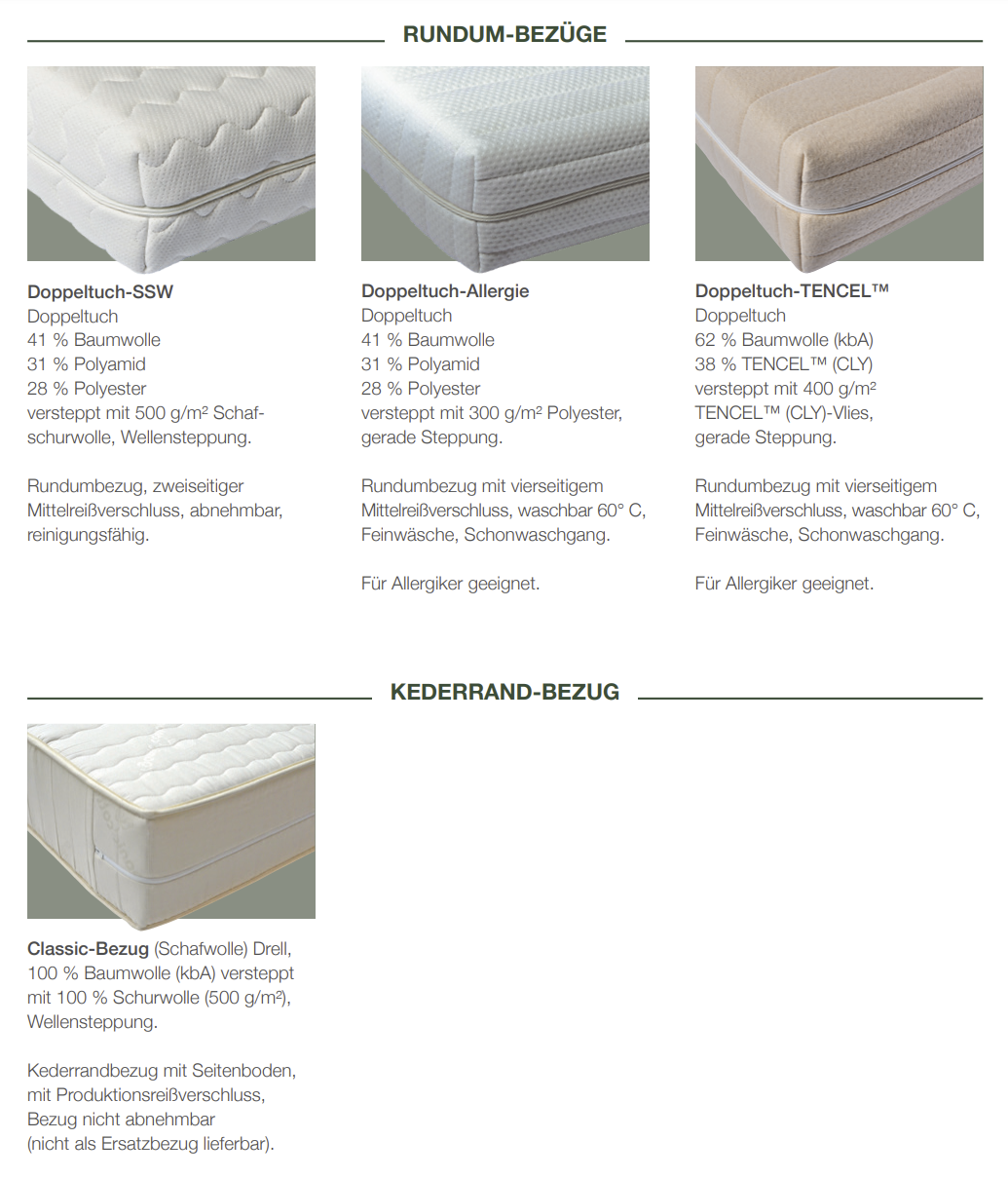 Kern: Mittelkern Mehrzonen-Tonnentaschenfederkern mit beidseitiger Kaltschaum-Abdeckung RG 40, 4 cm