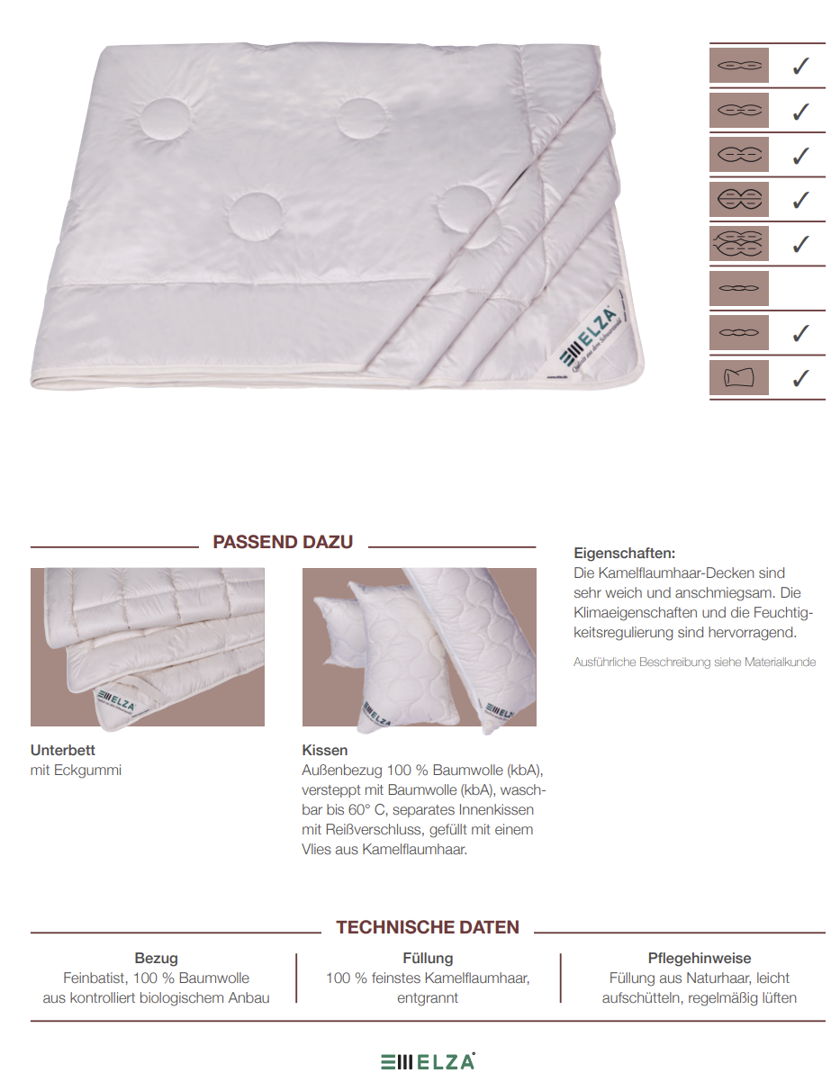 Füllung: 100 % Kamelflaumhaar, entgrannt