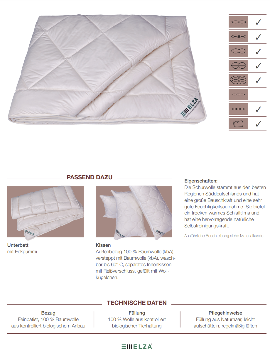 Füllung: 100 % Wolle aus kontrolliert biologischer Tierhaltung