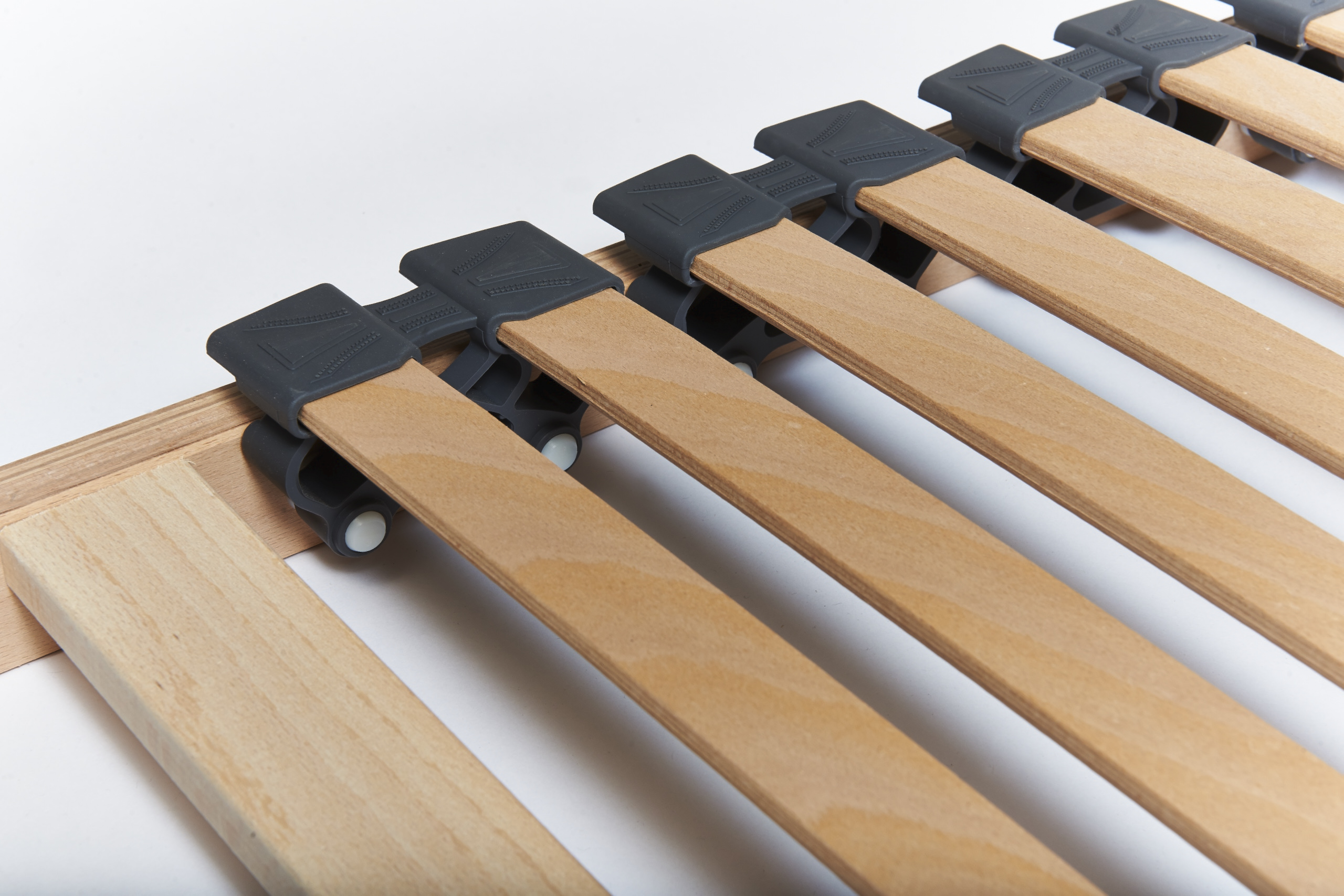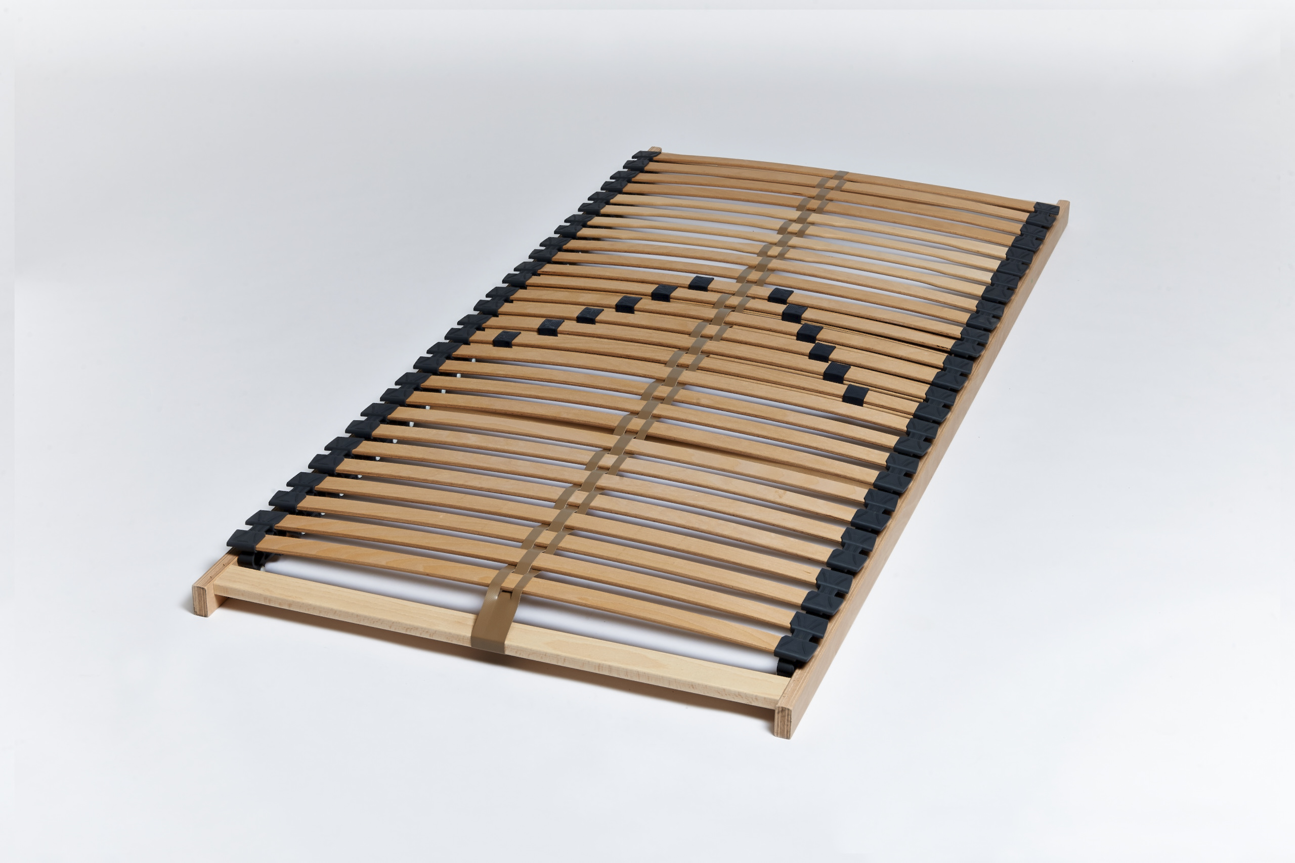 Buche-Schichtholzrahmen: 28 Federleisten, in Kautschukkappen gelagert, weichere Schulter-Komfortzone