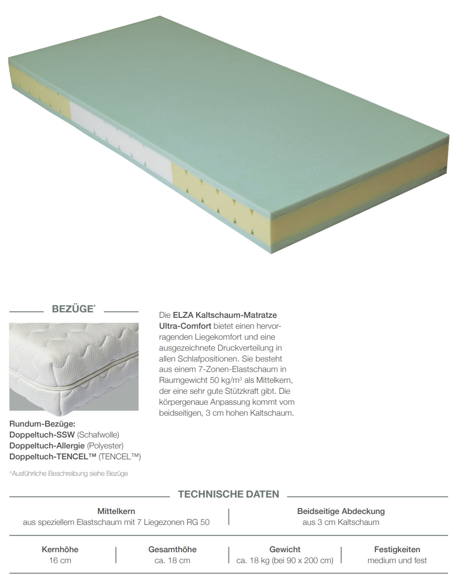 Downloads zu "ELZA Ultra-Comfort Kaltschaum-Matratze"