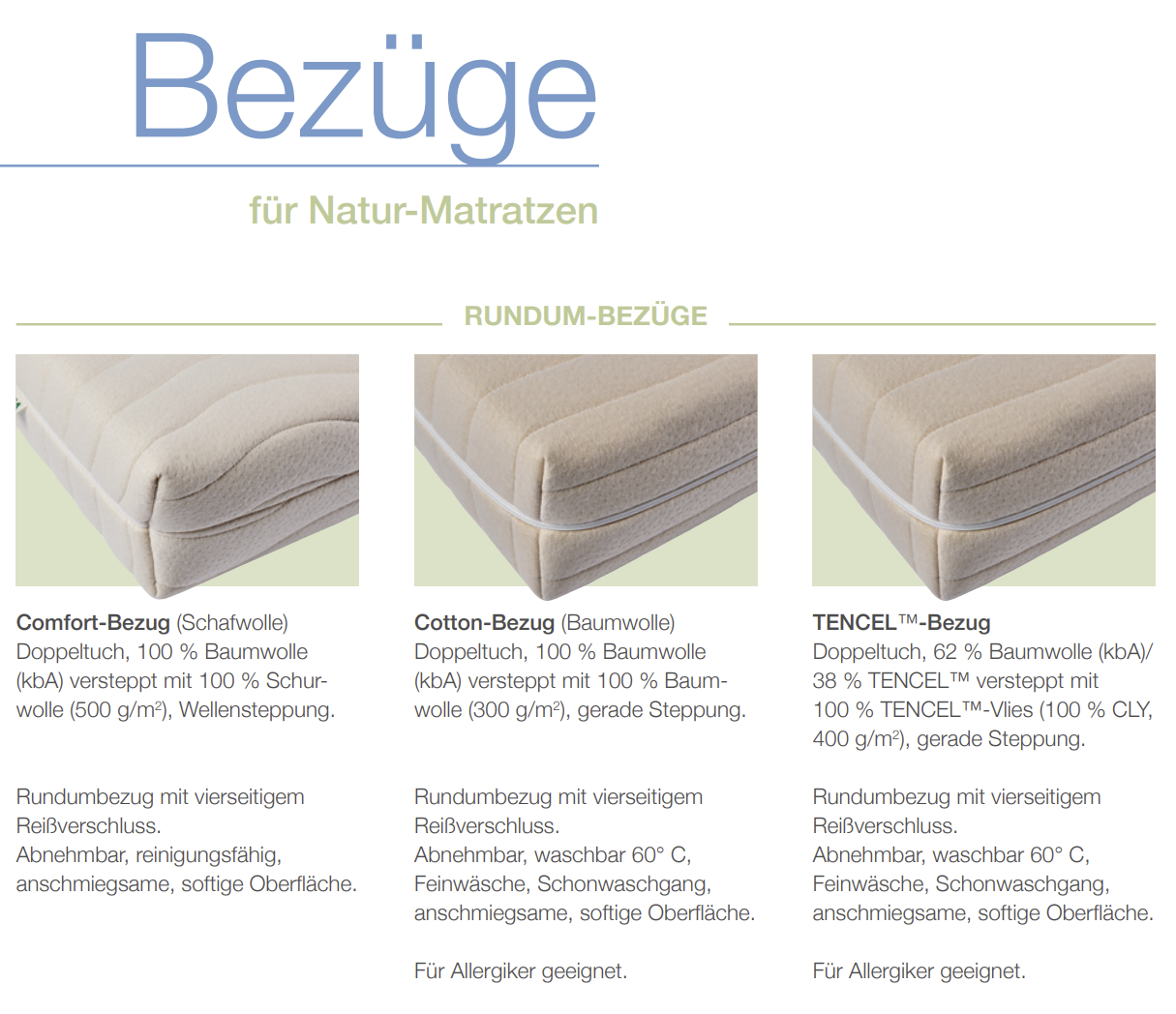 Kern: Sandwichkern 100 % Naturlatex und latexierter Kokos