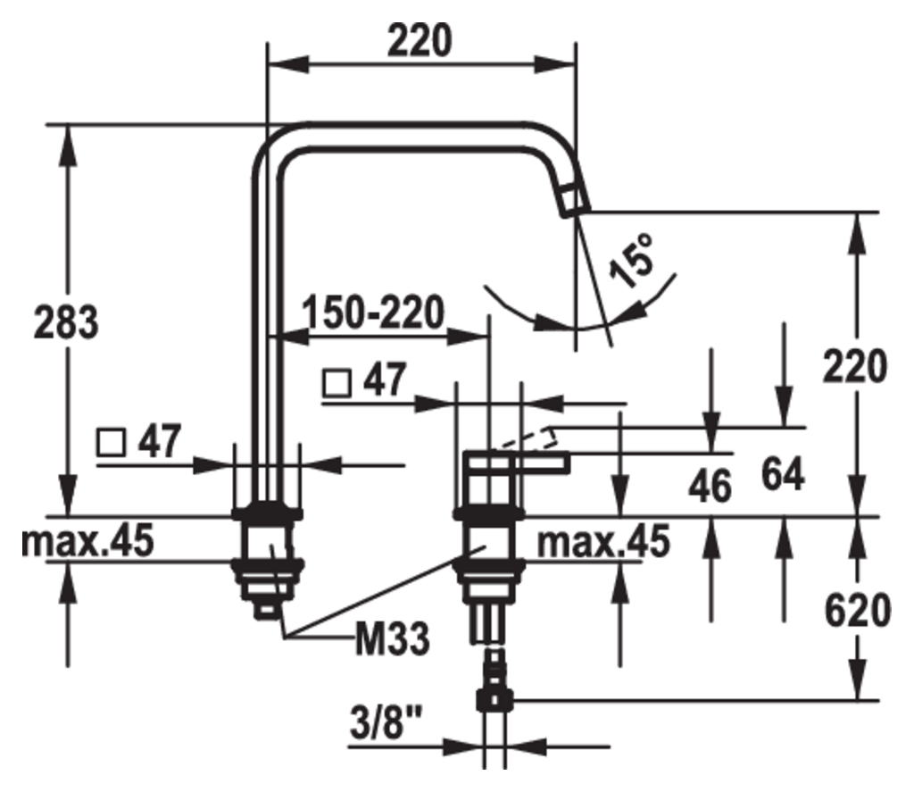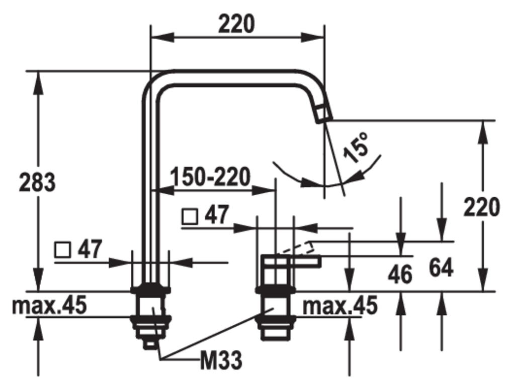 KWC Zweiloch-Einhebelmischer. Mit hohem Schwenkauslauf, separat zu positionierendem Hebel und Keramikkartusche.